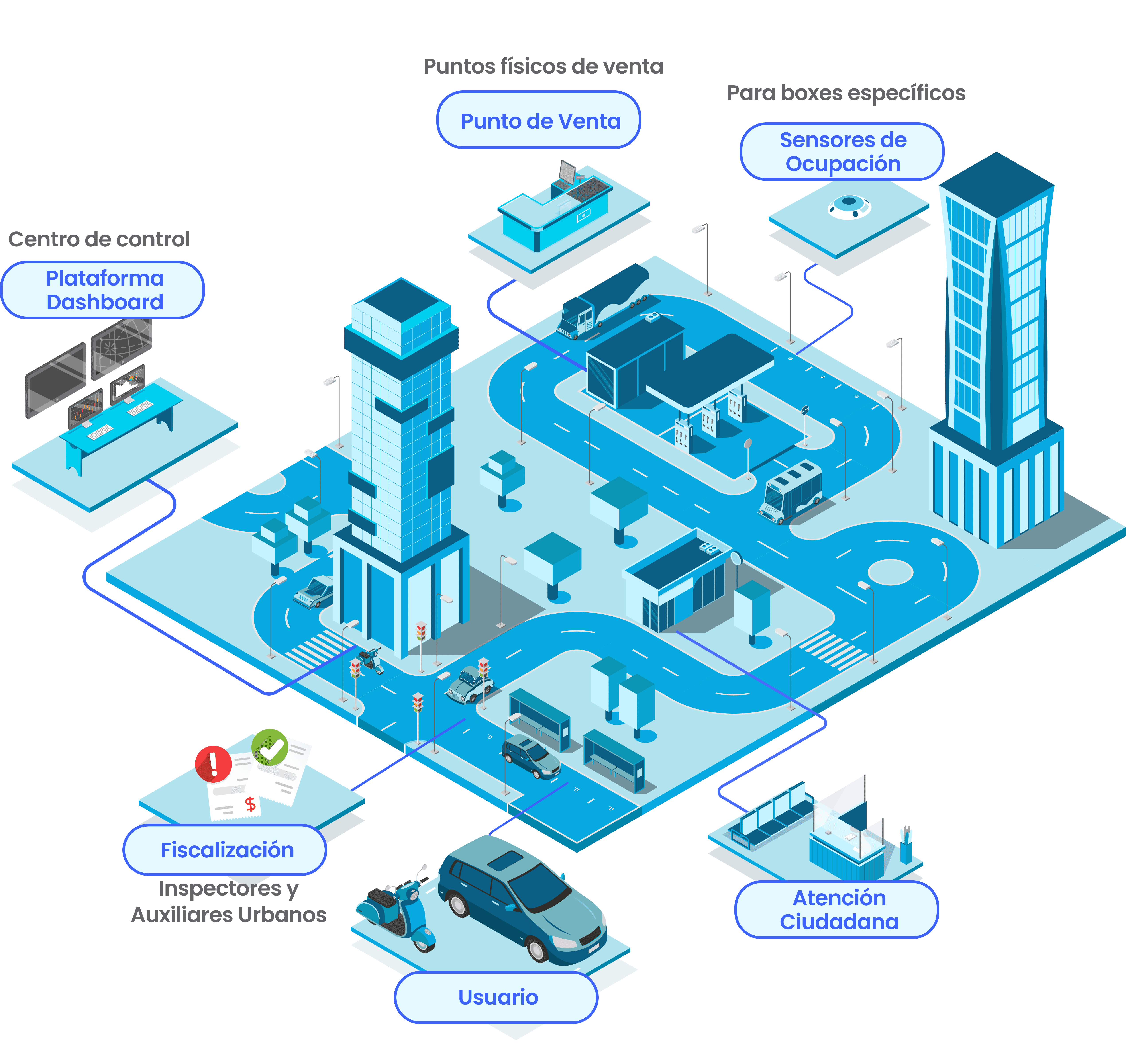 Integra datos en tiempo real, hardware inteligente y software de última generación para ordenar el tránsito, optimizar transacciones y ofrecer una experiencia ágil a ciudadanos y autoridades.